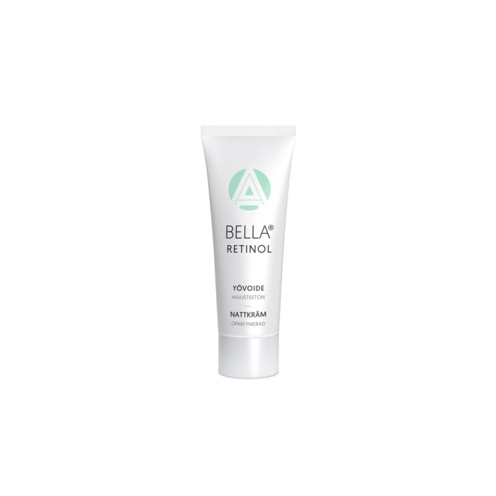 Bella yövoide sisältää A-vitamiinia. E-ja C-vitamiini täydentävät antioksidanttivaikutusta. Tehokkaasti kosteuttava hyaluronihappo lisää ihon kimmoisuutta ja saa sen hehkumaan ja näyttämään nuoremmalta. Hoitavassa voidepohjassa on mango-, jojoba-, riisinlese ja maapähkinäöljyä. Levitä iltaisin kasvojen ja kaulan iholle. Imeytyy hyvin.