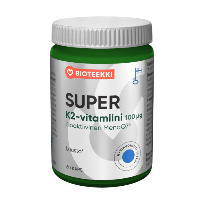 Kallpressad linfröolja, gelatin (gris), K2-vitaminpreparat (naturligt menakinon-7), vatten, fuktighetsbevarande medel (vegetabiliskt glycerol).