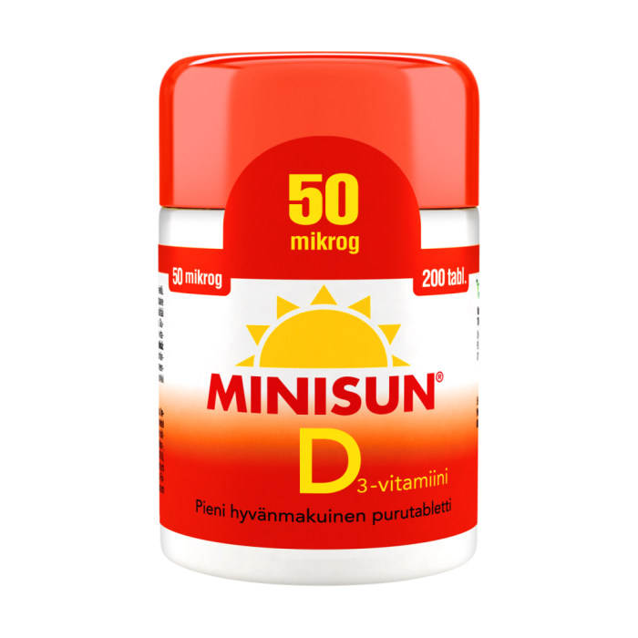 MINISUN D-VITAMIINI 50 MIKROG 200 TABL